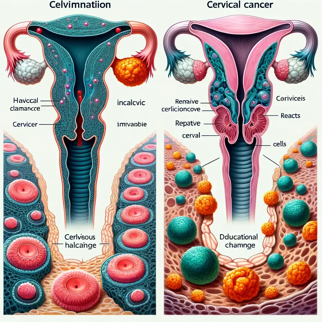자궁경부암: 이건 자궁경부의 세포들이 악성으로 변해서 암이 되는 거예요. 자궁경부암과 반응성 세포변화는 다른 상태이지만, 때때로 반응성 세포변화가 자궁경부암으로 발전할 수 있는 위험이 있어요. 특히, 인유두종 바이러스(HPV) 같은 특정 바이러스 감염이 자궁경부암의 위험을 높일 수 있어요.