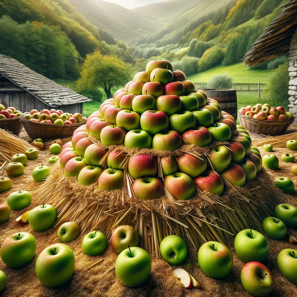 수확한 사과를 볏짚이나 톱밥 위에 올려놓고 숙성시켜요. 이 과정에서 사과는 천천히 숙성되면서 내부의 성분이 변화하고, 영양소가 더욱 풍부해지죠.