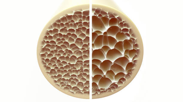 골세포도 활동이 적어지기 때문에 그물망의 크기가 점차 넓어지고 그물망 사이의 공간이 얇아지고 구멍이 뚫려 정상적인 골밀도를 잃게 됩니다. 그러면 겉으로는 멀쩡해 보여도 속은 텅 빈 골다공증에 걸리게 됩니다.